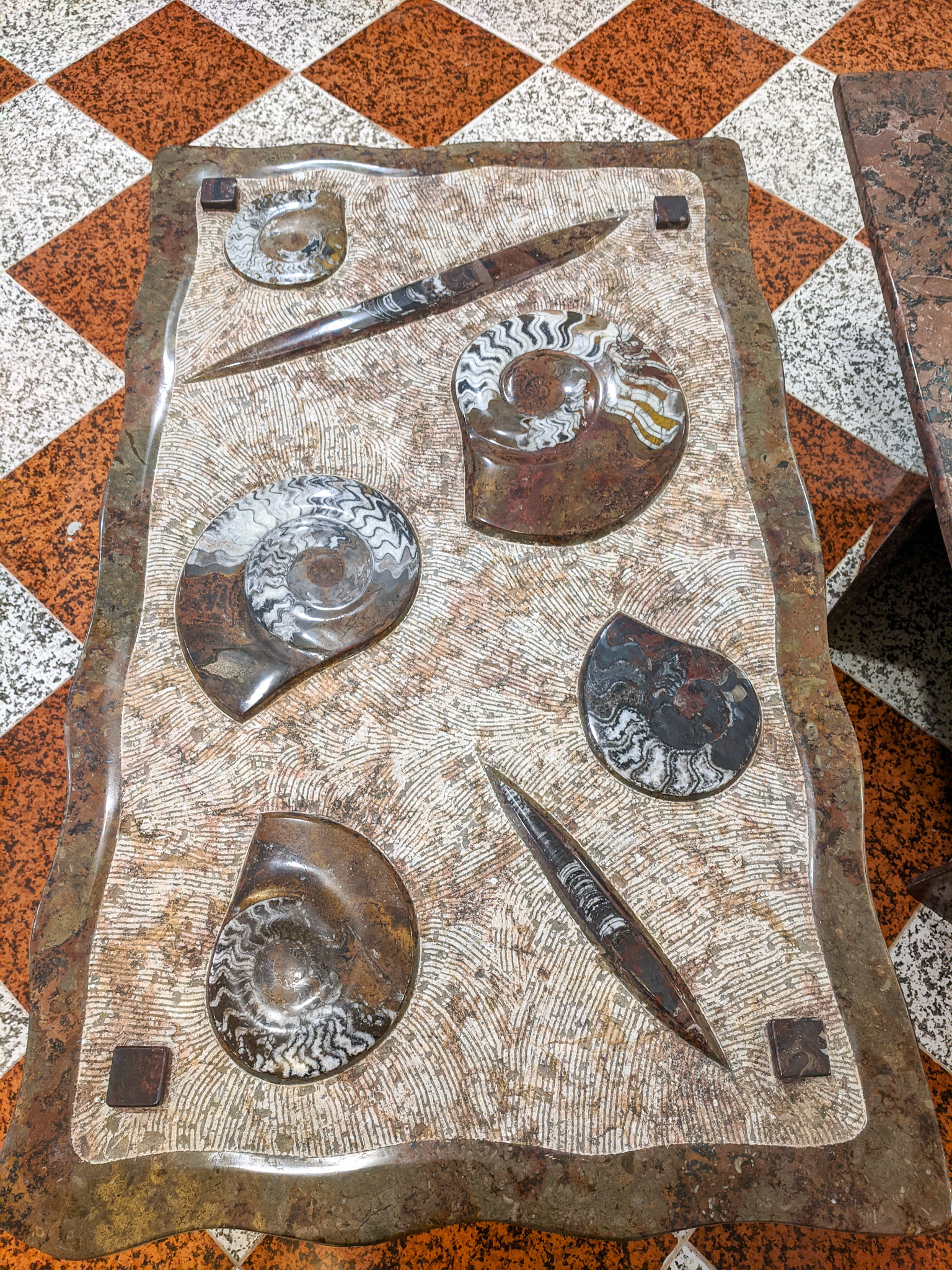 Since it’s a guided tour and (I’m guessing) the guides are paid commission by local businesses, we stopped by Macro Fossiles Kasbah to shop for trilobytes and other fossils excavated from the Sahara.